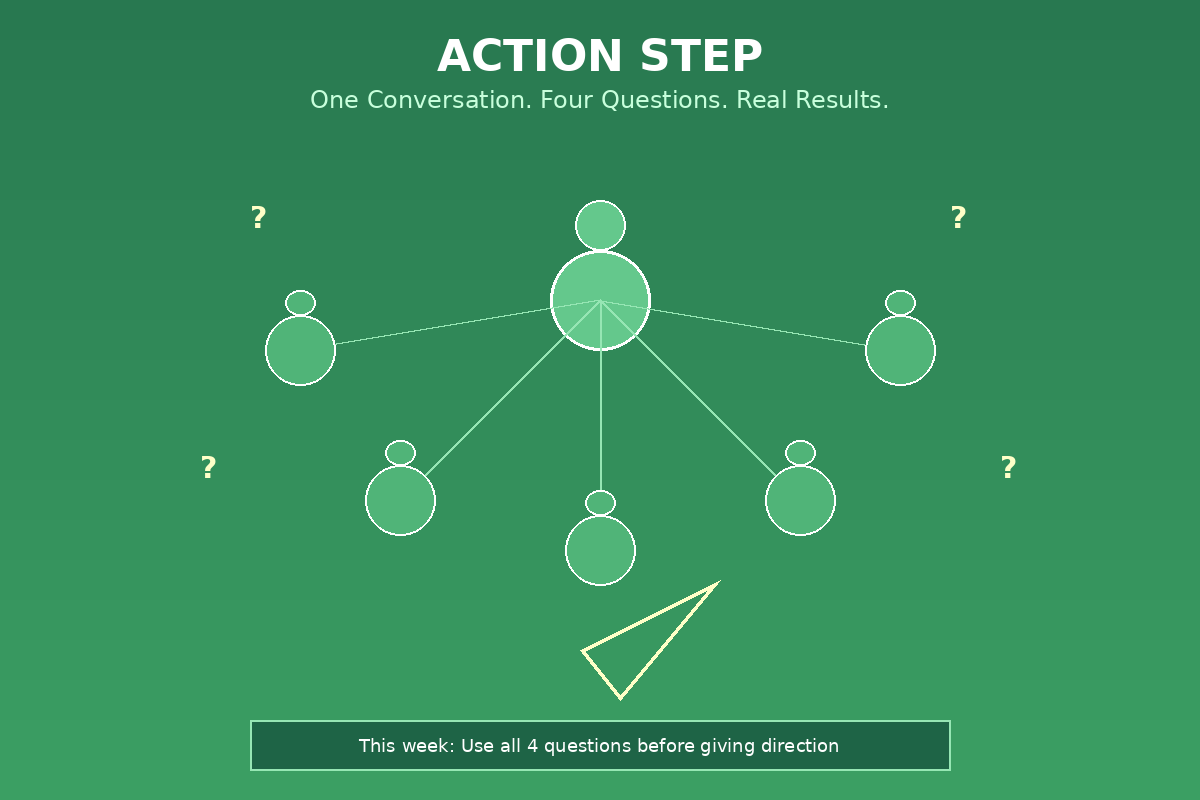 Pick one conversation where you need to give direction. Ask all four questions before you share your approach. Notice what shifts.