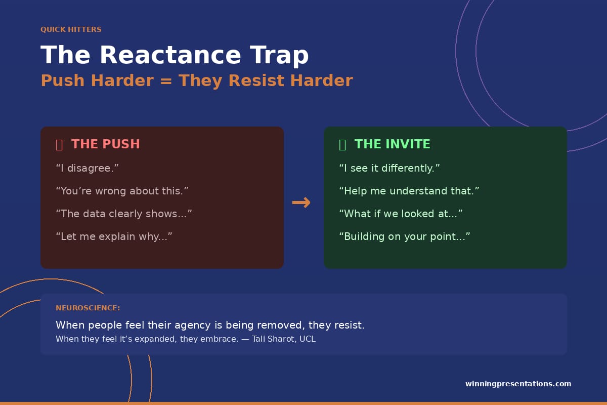 ✅ The “Reactance Trap” — the harder you push, the harder they resist (and the science behind it)